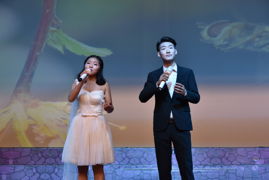 随着大幕一拉开,三对主持人闪亮登场。紧接着舞蹈《唐古拉风》、男生小合唱《共青团之歌》、女生独唱《给家捎个话》让人看的精彩,听的高兴。随后我院教师秦亚洁、李晓莉,唐飞带来的《查尔达什》器乐三重奏,顿时把人带到了西方艺术的殿堂,让人心灵为之震撼。还有双人舞、街舞,男生三重唱等节目,更是让人眼花缭乱、个个精彩。随后教师陈笑霏和吴成源的独唱更是将晚会推向高潮,在此之后,还有让人眼前一亮的相声,让人耳朵享受的男生独唱,男女对唱,以及配乐诗朗诵,无不让人激起热爱祖国,珍惜青春之情。舞蹈《风酥雨忆》带我们追忆起江南小巷、烟雨濛濛如画的情怀。最后我院院长周新美的一首《情系百姓》更是唱出了我们音乐与舞蹈师生的风采,赢得了大家的喝彩声,为我院迎新晚会画上了圆满的句号。