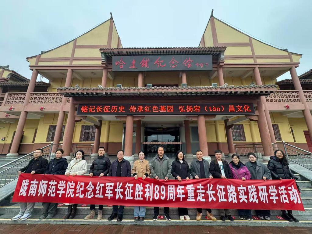 11月14 日上午,为持续深化纪念红军长征胜利89周年主题教育,扎实推进思政课实践教学走深走实,学校党委学生工作部组织开展红色研学活动。党委学生工作部副处长贺旭增带队,各学院13名辅导员共同前往哈达铺红军长征纪念馆,追寻红色足迹、传承长征精神。