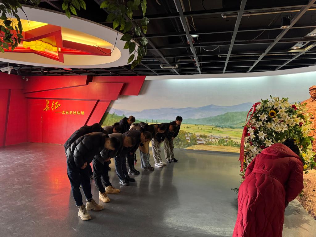 活动现场庄严肃穆,全体人员怀着崇敬之心向革命先烈行三鞠躬礼,以此表达对英烈的深切缅怀与崇高敬意。随后,贺旭增代表学生工作部向革命烈士敬献花篮,亲手整理花篮缎带,每一个动作都饱含着对革命先辈的追思与敬仰。仪式结束后,在纪念馆讲解员的引导下,辅导员们依次参观了各个展厅,通过珍贵的历史文物、详实的文字资料、生动的场景复原,重温红军在哈达铺的革命历程,深刻感悟长征精神的丰富内涵与时代价值。